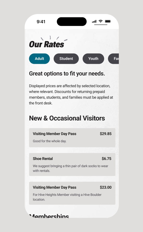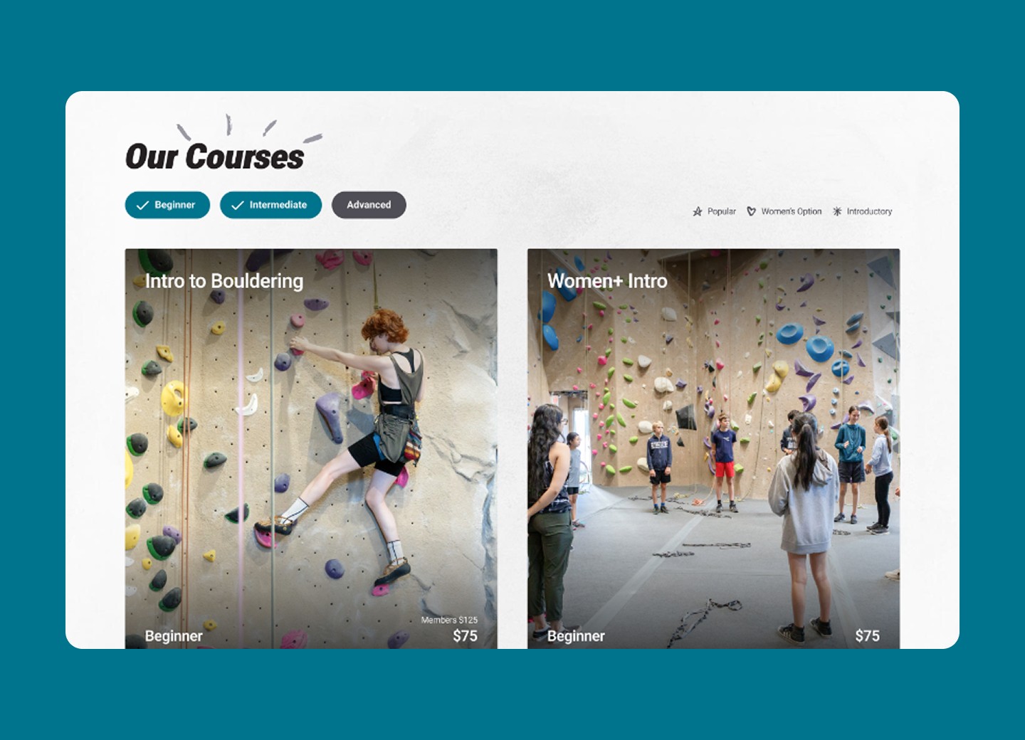 Website Redesign — a scalable solution for a climbing gym brand that outgrew its current web presence.
