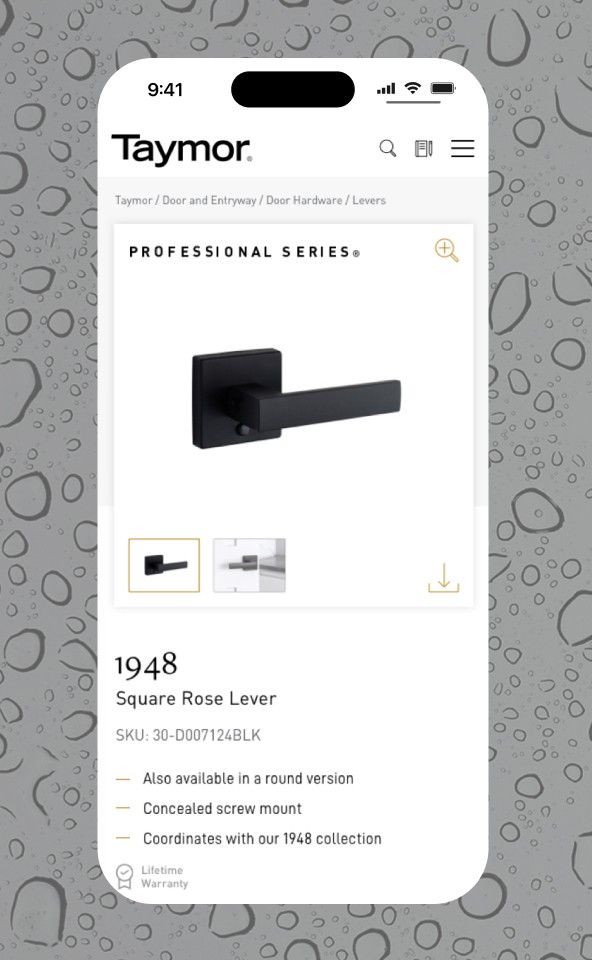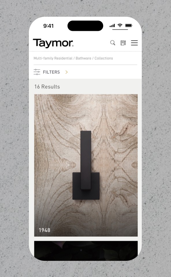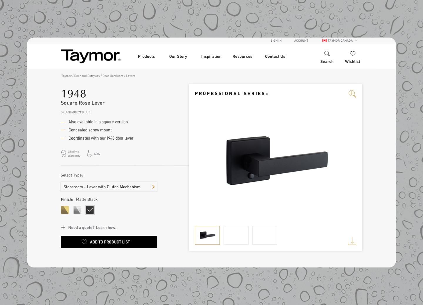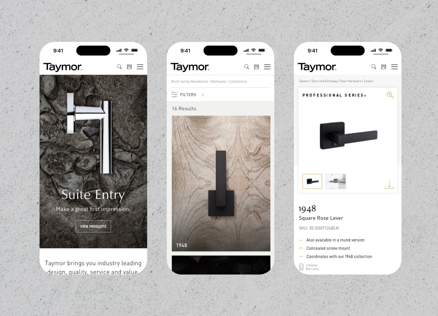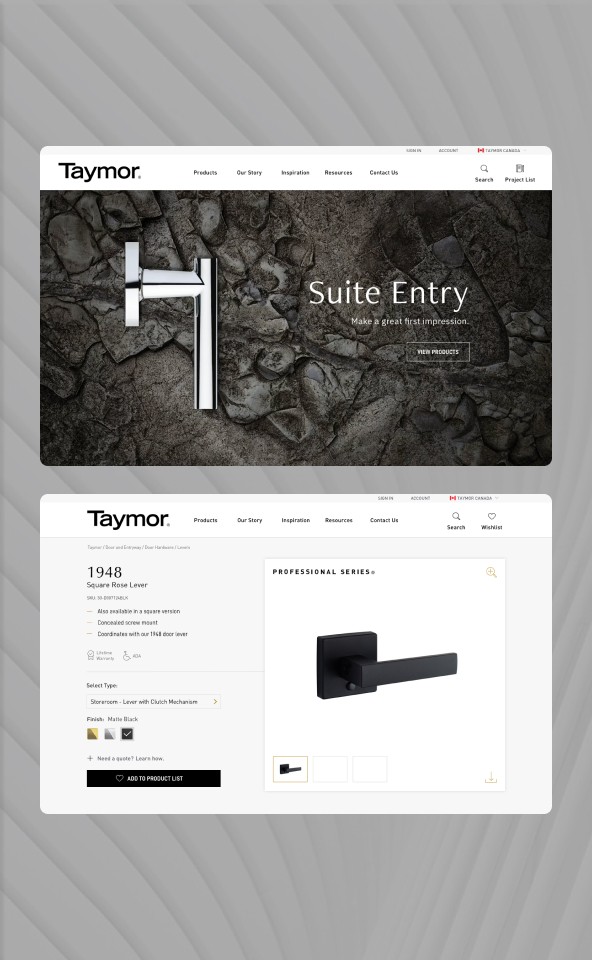 Reorganized product hierarchy, richer info, and a new quoting experience allows users to make informed decisions and request a quote more efficiently. An updated digital visual strategy was created to align with Taymor's future online plans.