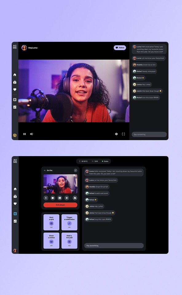 The Amazon IVS (Interactive Video Service) team needed a way to demonstrate how the service could be used to build User Generated Content functionality into an app. They needed something that was convincing as a stand alone app and easy to use as a starting point for the client’s own projects.